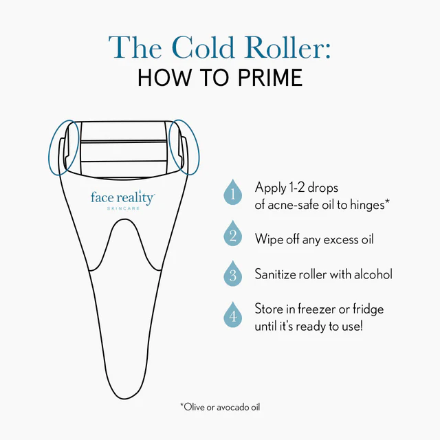 We recommend priming The Cold Roller before use to prevent squeakiness. Here’s how you do it:
